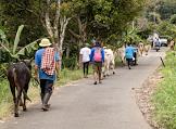 Традиционные гонки на коровах. Крестьяне пешком ведут коров на гонки. Иногда, расстояние немалое.