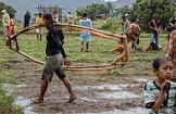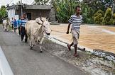 Традиционные гонки на коровах. Некоторых животных не удается запрячь – убегают.