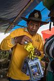Традиционные гонки на коровах. Местный организатор гонок. Принимает у иностранцев «пожертвования» на гонки и выдает специальный бедж гостя.
