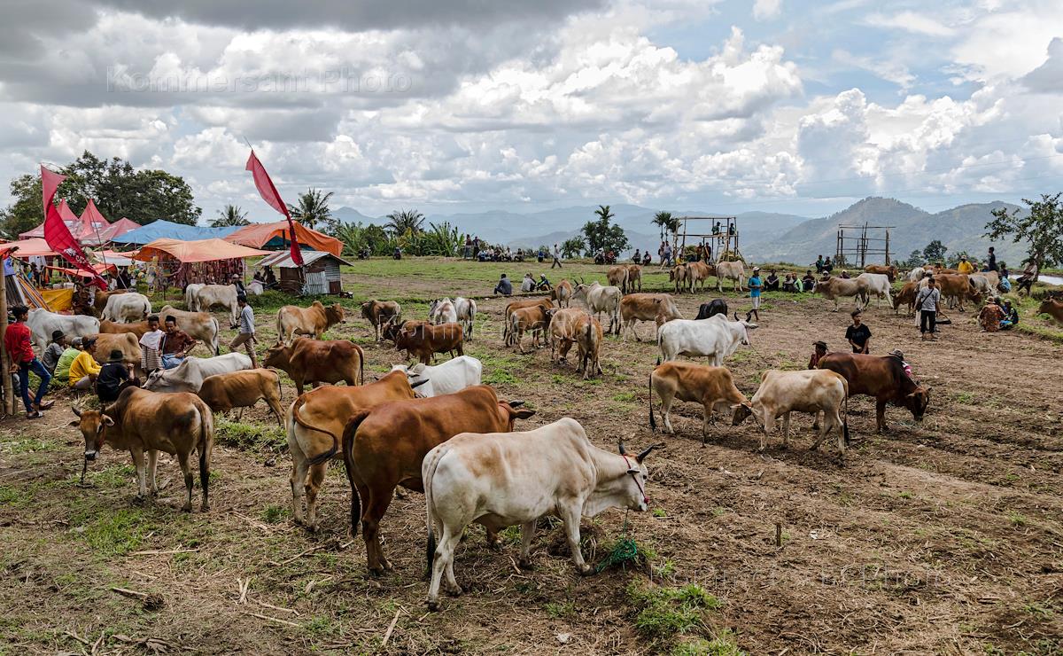 Традиционные гонки на коровах. В ожидании начала состязаний.