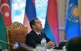 Рабочая поездка председателя правительства России Дмитрия Медведева в Таджикистан. Заседание совета глав правительств Содружества независимых государств (СНГ). Председатель правительства России Дмитрий Медведев во время заседания.