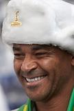 Встреча бразильского футболиста Кафу в аэропорту "Храброво". Жанровая фотография. Шапка с эмблемой чемпионата мира по футболу на мяче.