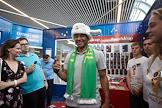 Встреча бразильского футболиста Кафу в аэропорту "Храброво". Жанровая фотография. Символ чемпионата мира по футболу - "Забивака".