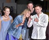 29-й Российский кинофестиваль "Кинотавр". Второй день. Актер Дмитрий Дюжев (справа) с супругой Татьяной (слева) перед премьерой фильма "Мира" режиссера Дениса Шабаева.