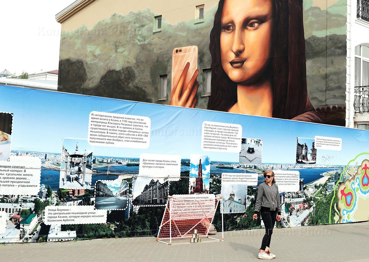 Виды Казани. Продажа сувенирной продукциик Чемпионату мира по футболу FIFA-2018.
