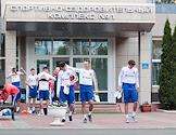 Открытая тренировка сборной России по футболу при подготовке к Чемпионату мира по футболу 2018 FIFA прошла в Учебно-тренировочном центре (УТЦ) "Новогорск". Слева направо: тренер по вратарям Гинтарас Стауче, игроки сборной России Владимир Габулов, Игорь Акинфеев и Андрей Лунев во время тренировки.