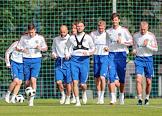 Открытая тренировка сборной России по футболу при подготовке к Чемпионату мира по футболу 2018 FIFA прошла в Учебно-тренировочном центре (УТЦ) "Новогорск". Слева направо: игроки сборной России Далер Кузяев, Федор Кудряшов, Марио Фернандес, Владимир Гранат, Юрий Газинский, Александр Ерохин и Игорь Смольников во время тренировки.