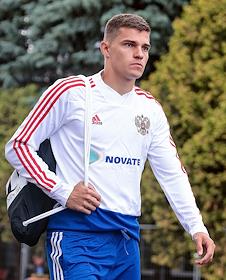Открытая тренировка сборной России по футболу при подготовке к Чемпионату мира по футболу 2018 FIFA прошла в Учебно-тренировочном центре (УТЦ) "Новогорск". Игрок сборной России Фёдор Смолов перед началом тренировки.