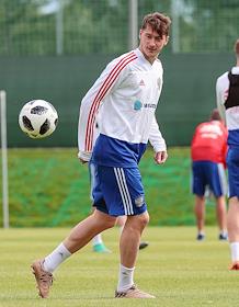 Открытая тренировка сборной России по футболу при подготовке к Чемпионату мира по футболу 2018 FIFA прошла в Учебно-тренировочном центре (УТЦ) "Новогорск". Игрок сборной России Марио Фернандес перед началом тренировки.