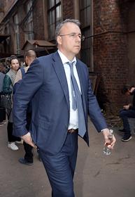 Церемония открытия основного проекта "Абракадабра" VI Московской международной биеннале молодого искусства прошло на площадке делового квартала "Рассвет". Продюсер, ресторатор Антон Каретников во время церемонии.