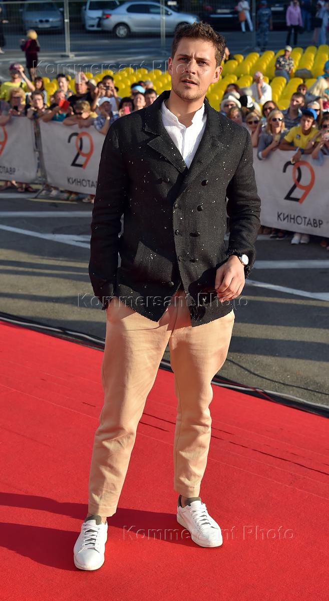 XXIX Российский открытый кинофестиваль "Кинотавр". Церемония закрытия. Актер Денис Шведов перед началом церемонии.