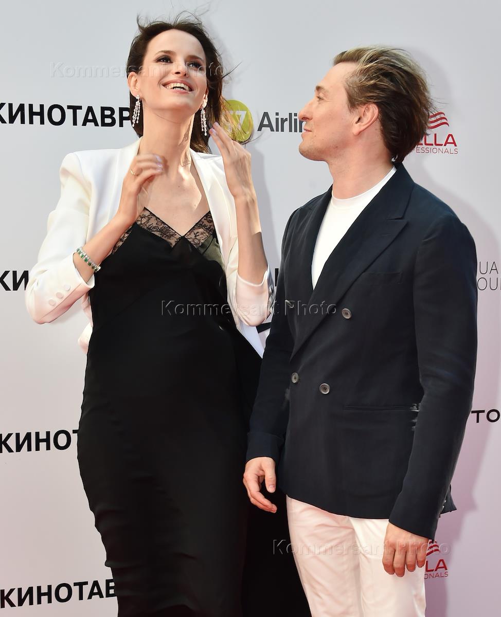 XXIX Российский открытый кинофестиваль "Кинотавр". Церемония закрытия. Актеры Рената Пиотровски (слева) и Денис Шведов перед началом церемонии.