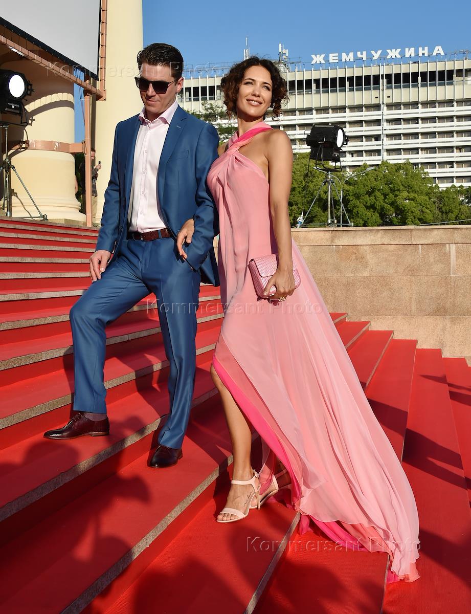 XXIX Российский открытый кинофестиваль "Кинотавр". Церемония закрытия. Актриса Агния Кузнецова (справа) и ее супруг, хореограф Максим Петров перед началом церемонии.