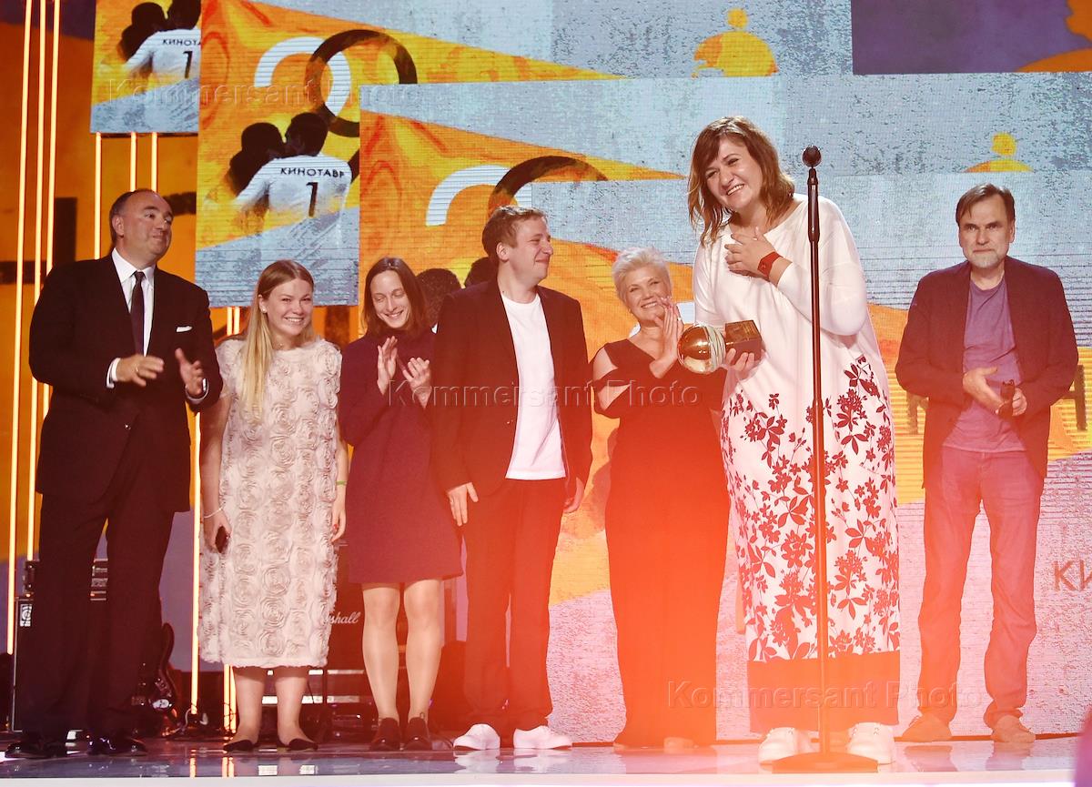 XXIX Российский открытый кинофестиваль "Кинотавр". Церемония закрытия. Съемочная группа фильма режиссера Наталии Мещаниновой "Сердце мира" во время церемонии.