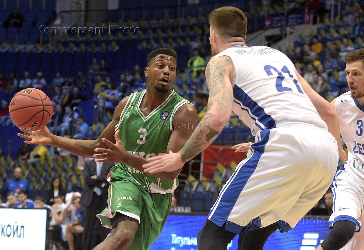 "Финал Четырех" Единой Лиги ВТБ по баскетболу. Матч за третье место между командами УНИКС (Казань) и "Зенит" (Санкт-Петербург) прошел на арене "ВТБ Ледовый Дворец". Игрок команды "Зенит" Демонте Харпер (справа) во время матча.