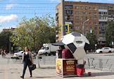 Подготовка Самары к Чемпионату мира по футболу 2018 FIFA. Киоск по продаже кваса, оформленный в футбольной тематике.