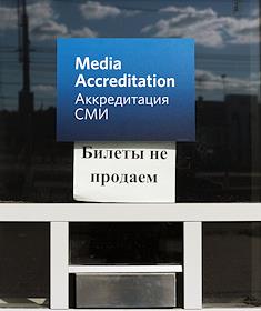 Подготовка к Чемпионату мира по футболу-2018. Объявление "билетов нет" в кассе стадиона "Волгоград".