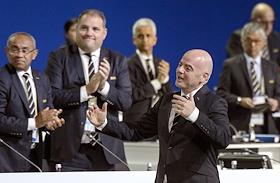 68-ой конгресс Международной федерации футбола (FIFA) прошле в Центральном выставочном комплексе(ЦВК) "Экспоцентр". Президент FIFA Джанни Инфантино (слева) и генеральный секретарь FIFA Фатма Самура (справа) во время заседания конгресса.