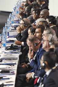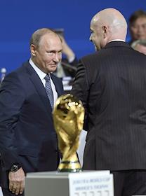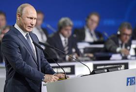 68-ой конгресс Международной федерации футбола (FIFA) прошле в Центральном выставочном комплексе(ЦВК) "Экспоцентр". Президент России Владимир Путин во время заседания конгресса.