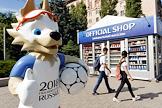 Подготовка к проведению Чемпионата мира (ЧМ) по футболу в России FIFA-2018. Суверниная лавка и талисман ЧМ "Волк-Забивака".