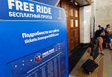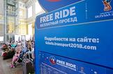 Подготовка к проведению Чемпионата мира (ЧМ) по футболу в России FIFA-2018. Объявление о бесплатном проезде для болельщиков ЧМ на железнодорожном вокзале города.