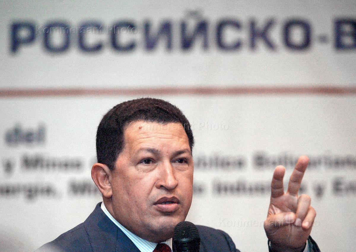 Президент Венесуэлы Уго Чавес на первом российско-венесуэльском нефтегазовом семинаре, который прошел в гостинице "Рэдиссон-Славянская".