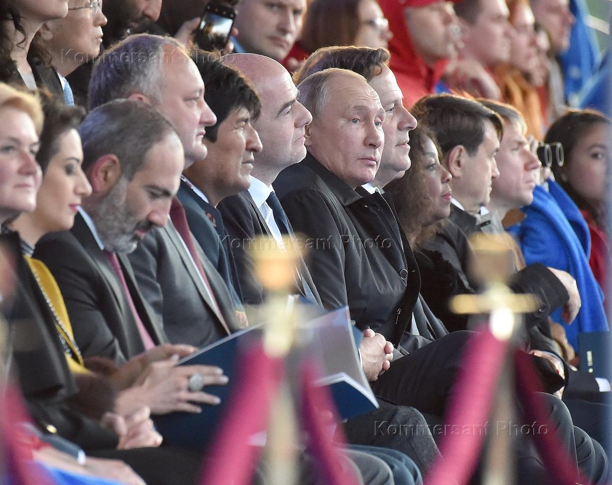 Gala-concert of famous classic music stars for 2018 FIFA World Cup Russia. Bolivian President Evo Moralez (left) before the gala-concert.