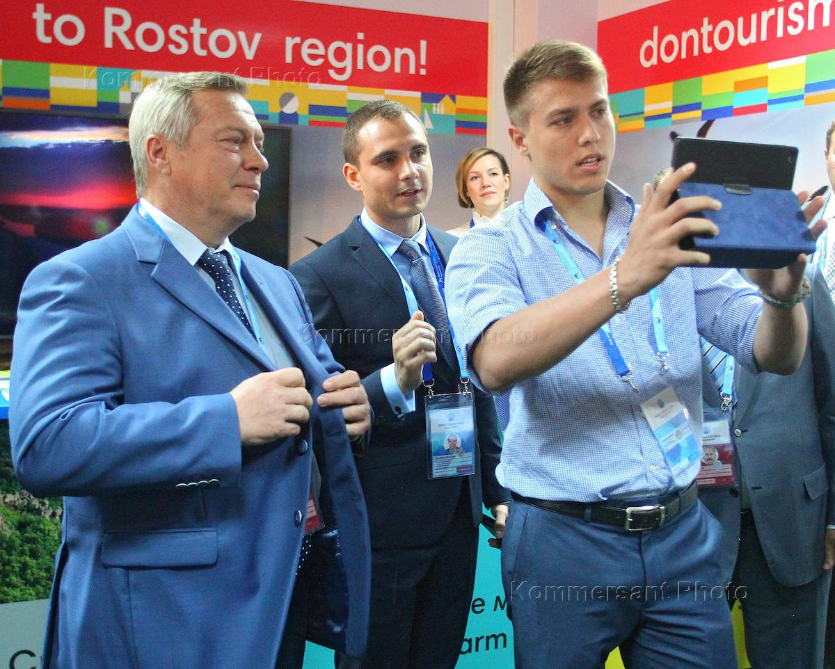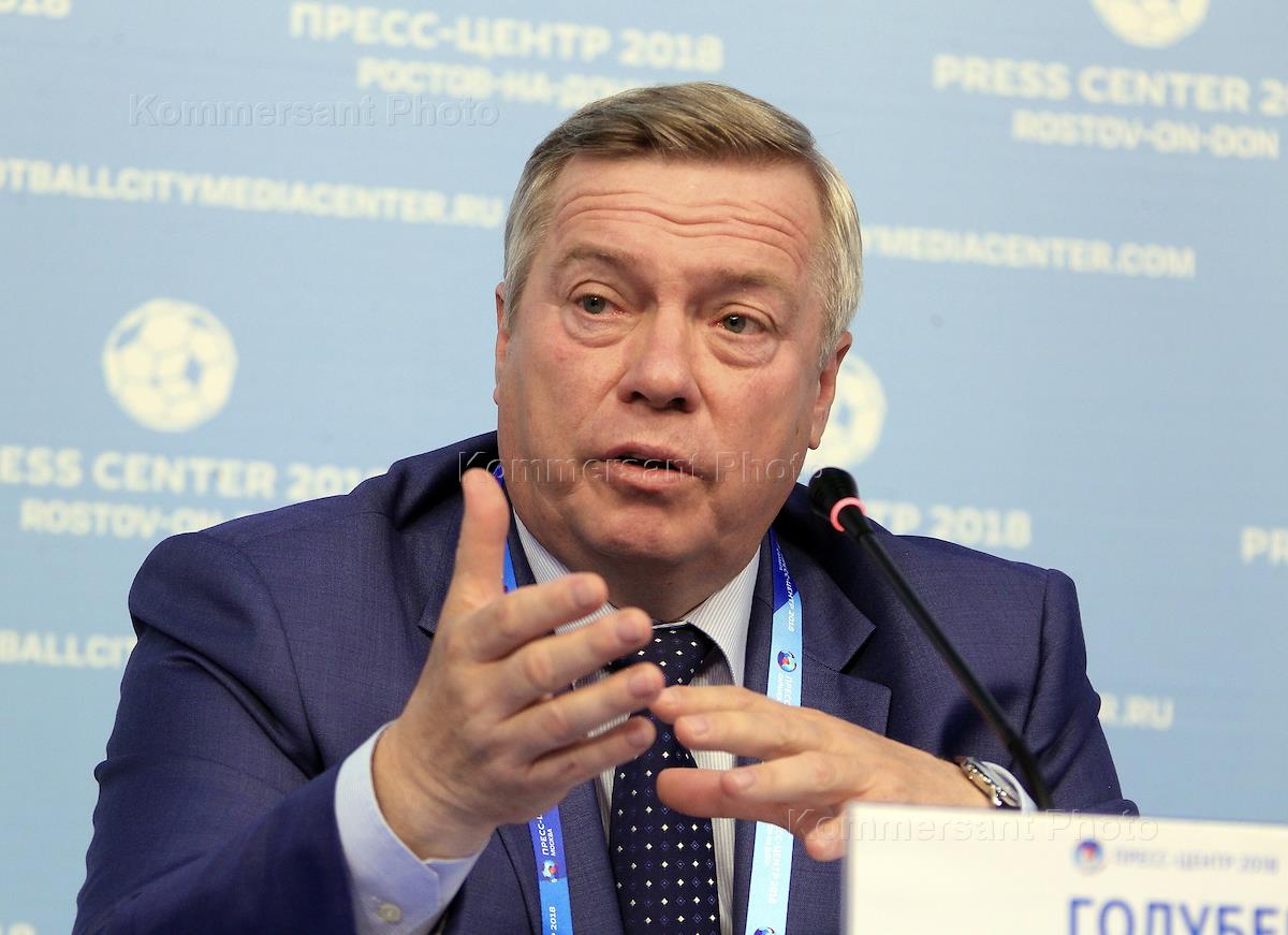 Открытие пресс-центра ЧМ 2018. Губернатор Ростовской области Василий Голубев, во время осмотра пресс-центра и во время пресс-конференции.
