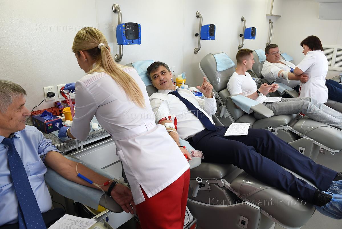 Акция по сдаче крови во Всемирный день донора прошла в Государственной думе (ГД) Росси. Председатель комитета ГД по финансовому рынку Анатолий Аксаков после сдачи крови.