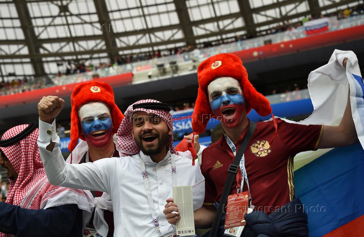 FIFA World Cup Russia 2018. Group A. Russia v Saudi Arabia at the stadium "Luzhniki". Saudi and Russian fans before the match.