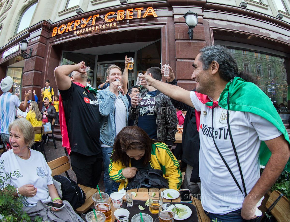 Чемпионата мира по футболу в России FIFA 2018. Мексиканские болельщики во время прогулки по улицам Москвы.