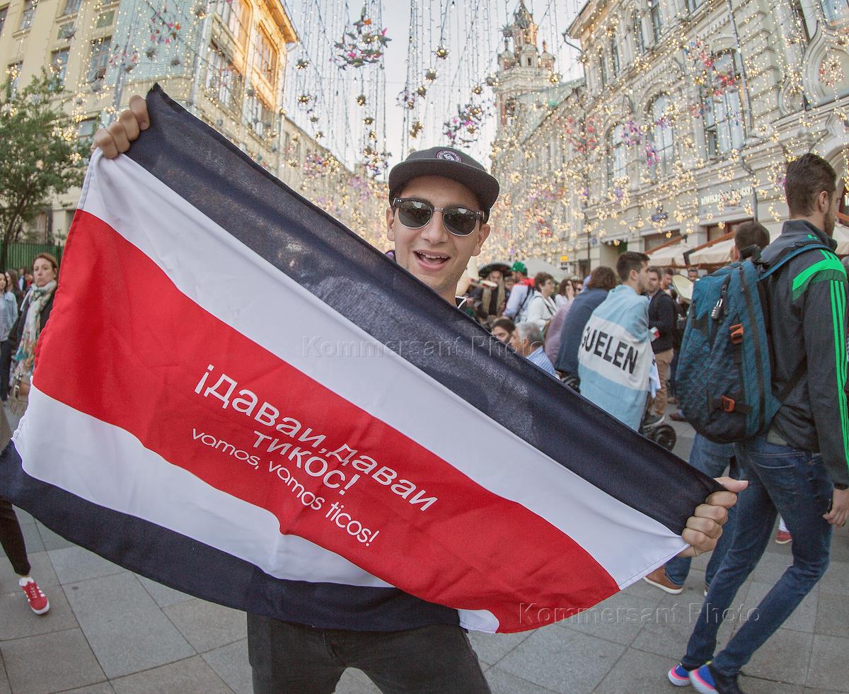 Чемпионата мира по футболу в России FIFA 2018. Иностранные болельщики во время прогулки по улицам Москвы.