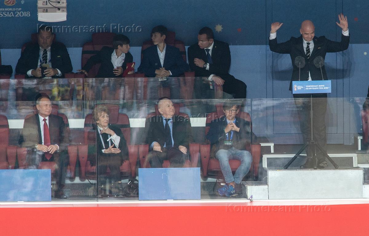 FIFA World Cup Russia 2018. Group A. Russia v Saudi Arabia at the stadium "Luzhniki". FIFA president Jianni Infantino (right), member of buro Nikita Simonyan (center), Valentina Yashina (second right) and Russian President Vladimir Putin (left) during the opening ceremony.