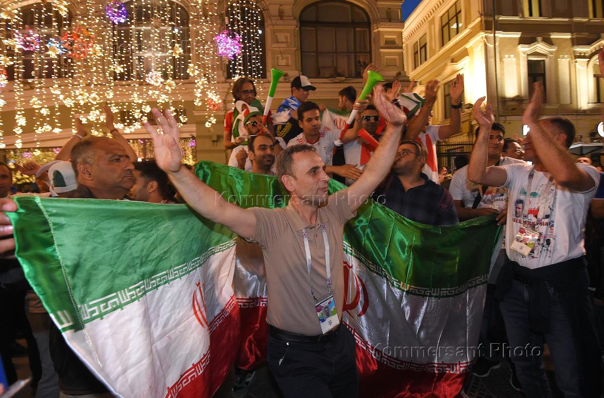Чемпионат мира по футболу в России FIFA-2018. Болельщики сборной Ирана на Никольской улице.