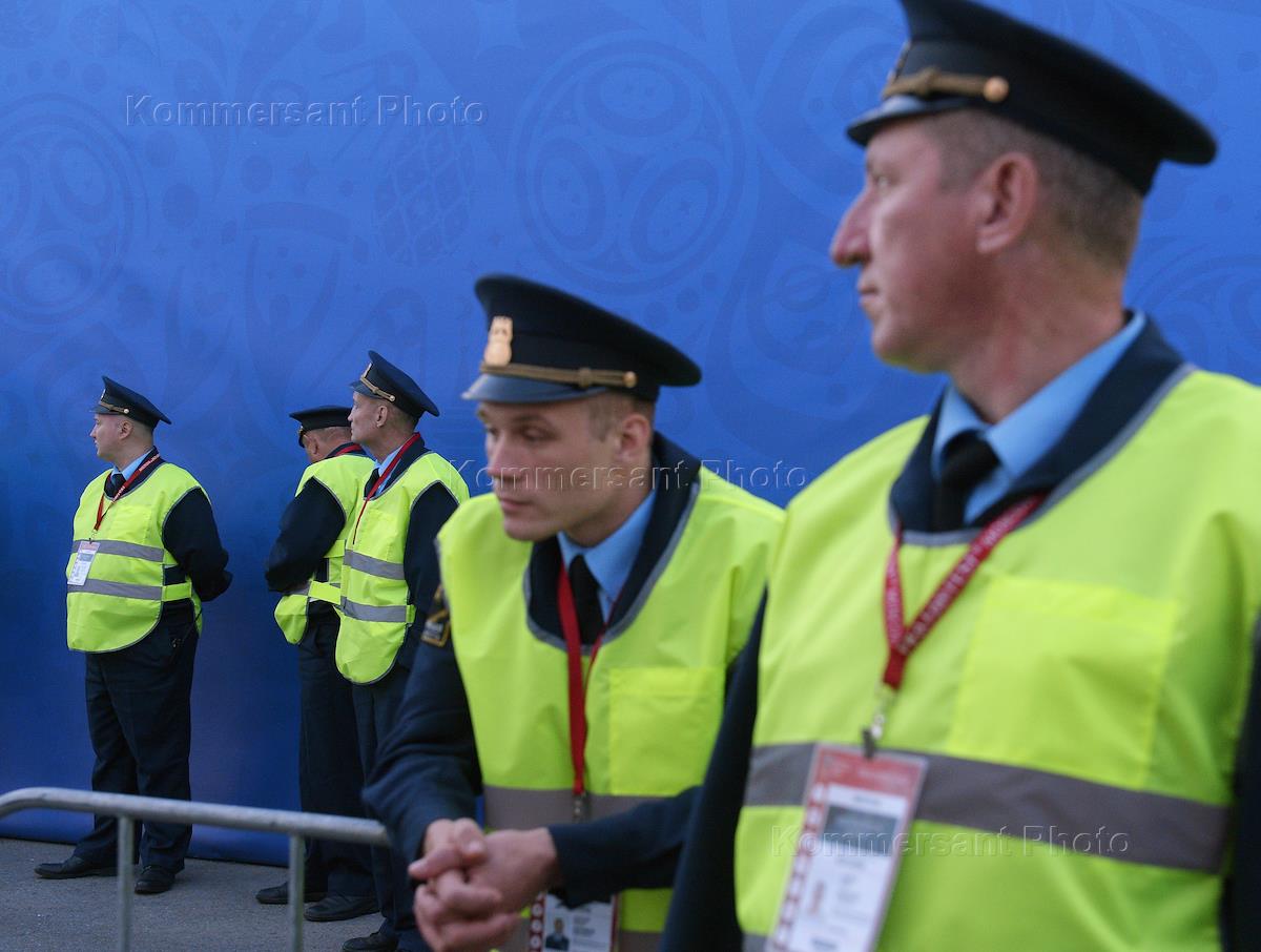 Чемпионат мира по футболу FIFA 2018. Матч открытие. Групповой этап. Матч между сборными командами России и Саудовской Аравии. Сотрудники правоохранительных органов на территории фан-зоны на Воробьевых горах.