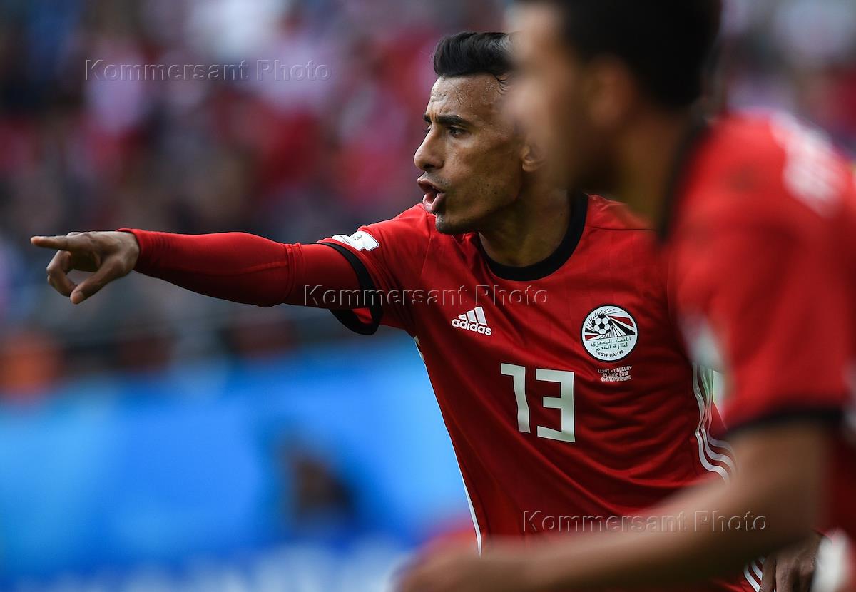 Чемпионат мира по футболу в России FIFA 2018. Групповой этап. Матч между сборными Египта и Уругвая на стадионе "Екатеринбург Арена". Игрок сборной Египта Мохаммед Абдельшафи во время матча.