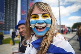 Чемпионат мира по футболу в России FIFA-2018. Групповой этап. Матч между сборными Египта и Уругвая на стадионе "Екатеринбург Арена". Болельщики сборной Уругвая перед началом матча.