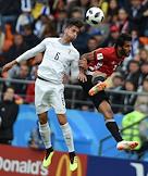 Чемпионат мира по футболу в России FIFA-2018. Групповой этап. Матч между сборными Египта и Уругвая на стадионе "Екатеринбург Арена". Игрок сборной Уругвая Диего Годин (слева) и игрок сборной Египта Абдалла Саид (справа) во время матча.