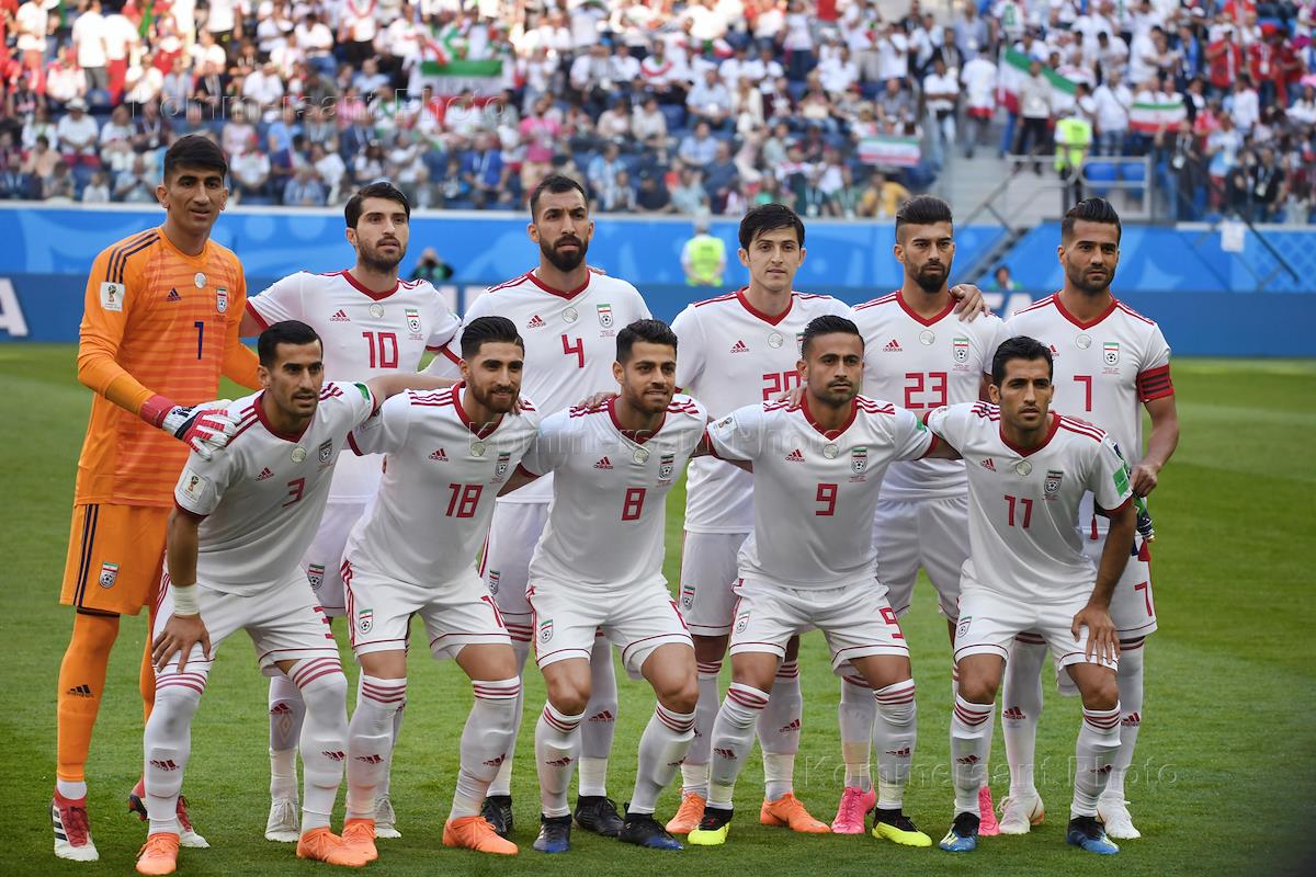 Чемпионат мира по футболу в России FIFA-2018. Групповой этап. Матч между сборными командами Марокко и Ирана на стадионе "Санкт-Петербург". Игроки сборной Ирана во время матча.