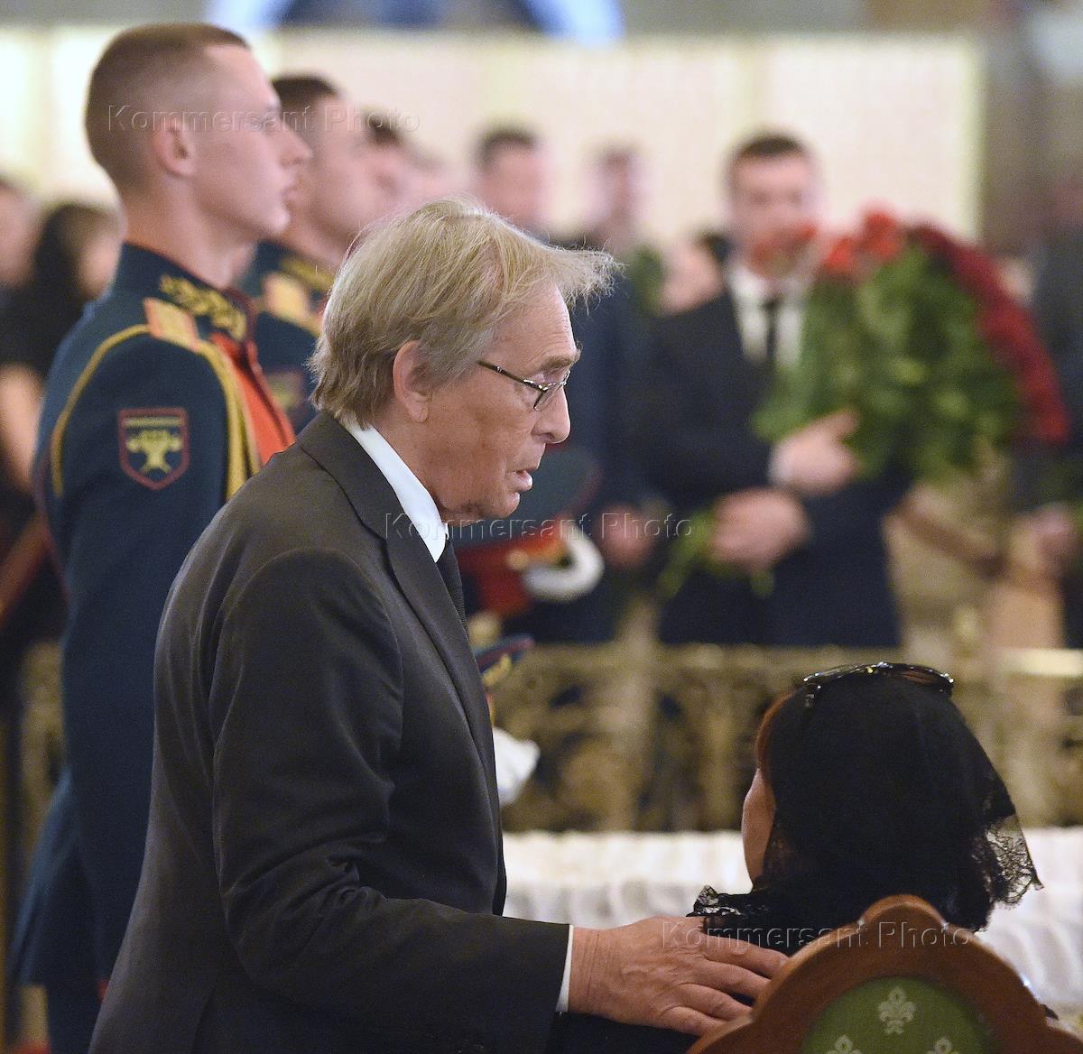 Церемония прощания с режиссером, председателем комитета Государственной думы (ГД) России по культуре Станиславом Говорухиным прошла в храме Христа Спасителя. Член комитета ГД России по международным делам Артур Чилингаров (слева) во время церемонии.