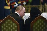 Церемония прощания с режиссером, председателем комитета Государственной думы (ГД) России по культуре Станиславом Говорухиным прошла в храме Христа Спасителя. Президент России Владимир Путин (слева) и вдова Станислава Говорухина Галина Говорухина (справа) во время церемонии.