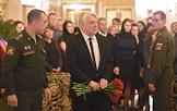 Церемония прощания с режиссером, председателем комитета Государственной думы (ГД) России по культуре Станиславом Говорухиным прошла в храме Христа Спасителя. Член комитета ГД России по охране здоровья Николай Герасименко (слева) и председатель комитета ГД России по международным делам Леонид Слуцкий (справа) во время церемонии.