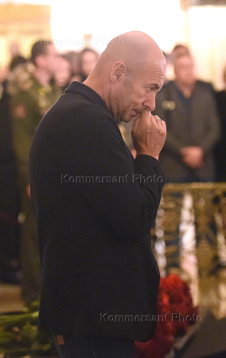 Церемония прощания с режиссером, председателем комитета Государственной думы России по культуре Станиславом Говорухиным прошла в храме Христа Спасителя. Певец Александр Буйнов во время церемонии.