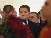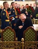 Церемония прощания с режиссером, председателем комитета Государственной думы (ГД) России по культуре Станиславом Говорухиным прошла в храме Христа Спасителя. Член комитета ГД России по международным делам Артур Чилингаров (слева) во время церемонии.