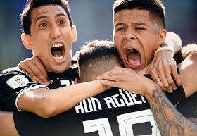 FIFA World Cup Russia 2018. Group D. Iceland v Argentina at the stadium "Spartak" . Argentinian football players selebrating a goal during the match.