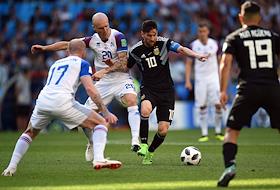 FIFA World Cup Russia 2018. Group D. Iceland v Argentina at the stadium "Spartak" . Argentinian football player Lionel Messi (right) during the match.