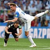 FIFA World Cup Russia 2018. Group D. Iceland v Argentina at the stadium "Spartak" . Argentinian football player Nicolas Otamendi (right) and Icelandic football player Kari Arnason (left) during the match.