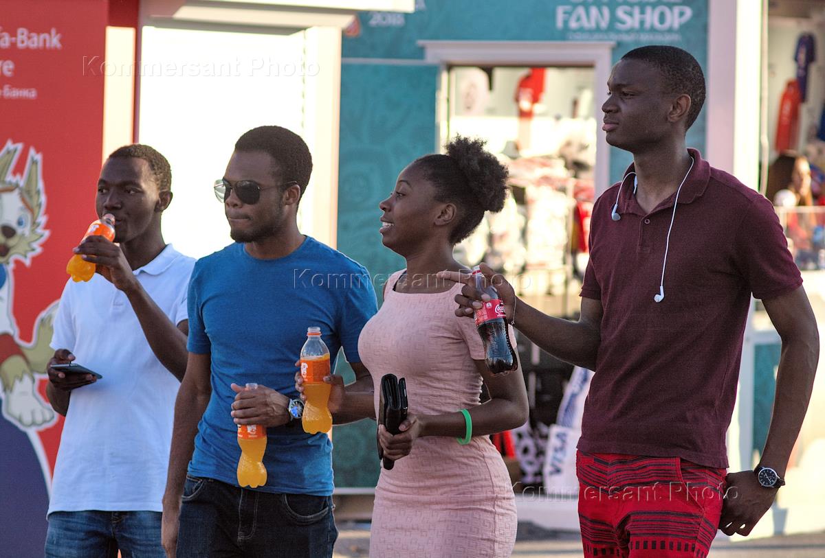 Чемпионат мира по футболу в России FIFA-2018. Групповой этап. Болельщики в фан-зоне на Театральной площади.