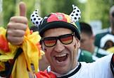 Чемпионат мира по футболу в России FIFA 2018. Групповой этап. Матч между сборными командами Германии и Мексики на стадионе "Лужники". Болельщики сборной Германии перед началом матча.