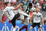 Чемпионат мира по футболу в России FIFA 2018. Групповой этап. Матч между сборными командами Германии и Мексики на стадионе "Лужники". Игрок сборной Мексики Уго Айяла (справа) во время матча.